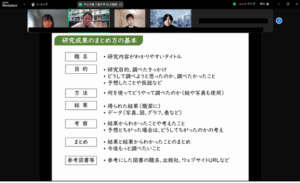 このようにゼブラフィッシュの心拍数を測って表に記入していきました。3~4匹の心拍数を測る必要があったので、班の中で分担することでスムーズに計測を行っていました。受講生たちは、対面の講座にも慣れて活発に話し合ったり自然に役割分担したりしていたのが印象的です。