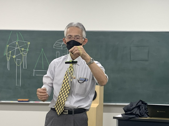 初めに松本先生からこれまでの研究を紹介していただきました。松本先生はゴルフクラブのシャフトから新幹線まで幅広い分野で日本のものづくりを支えてこられました。