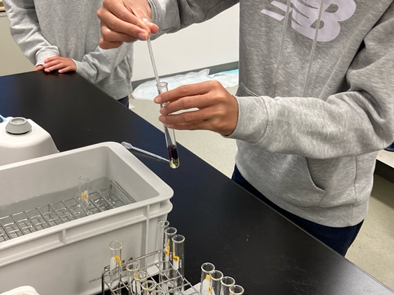 その後、本実験を始める前に、ボルテックスを使って溶液を混ぜる練習、ピペットを使って決まった容量の溶液を計り取る練習をしました。