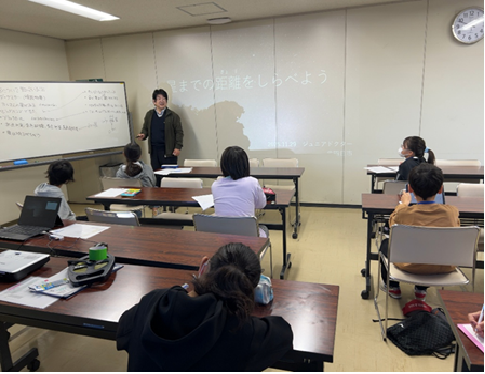 講座の冒頭では、受講生一人ひとりが「宇宙について知っていること」を発表しました。惑星や星座の話、ブラックホール、宇宙の広さに関する疑問など、さまざまな意見が出ていました。