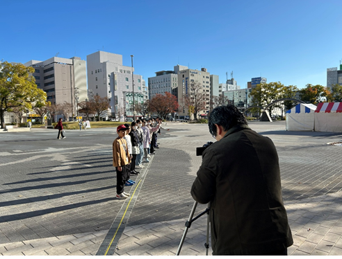 位置が変わると見える角度が変化するという性質を利用し、星の距離を測る仕組みを学びました。そして、実際に屋外に出て三角測量の原理を体験しました。メジャーや分度器を使いながら角度を測定し、距離を求めるまでの流れを熱心に取り組んでいました。