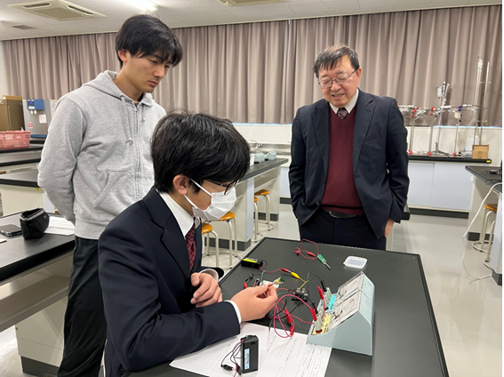受講生は充電回路をつくり、充電中の電流と電圧の動きを観察しました。受講生は電流計と電圧系の針がどのように動くのか調べ、その動きをグラフに表すことで、電流と電圧の関係について理解を深めました。